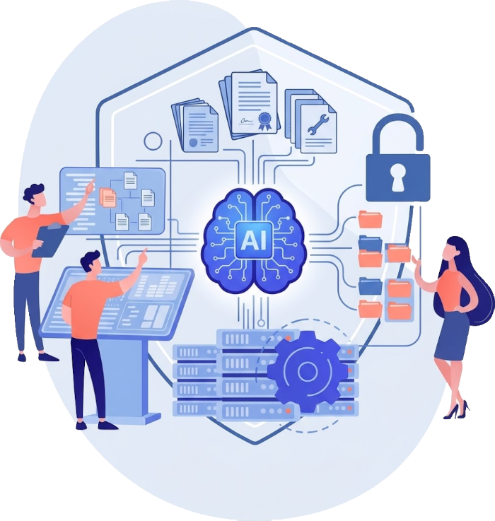 Knowledge Mining con IA privata. Interroga migliaia di documenti tecnici e contratti riservati in secondi, senza esporre i tuoi dati all'esterno.